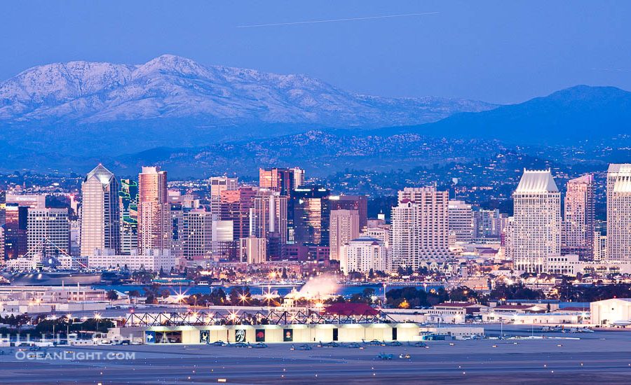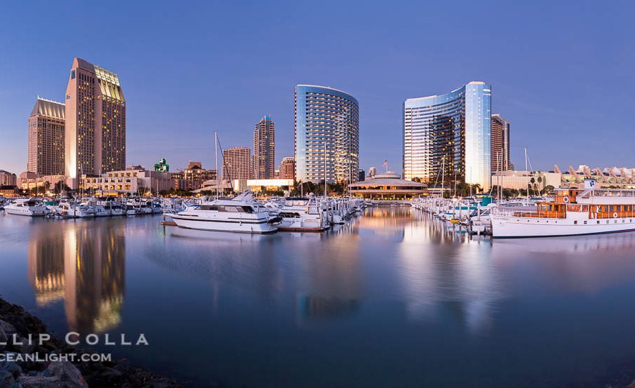 Dawn breaks over the San Diego Marriott Hotel and Marina, as viewed from the San Diego Embarcadero Marine Park. Cheers and thanks for looking! San Diego Marriott Hotel and Marina, and Manchester Grand Hyatt Hotel (left) viewed from the San Diego Embarcadero Marine Park, sunrise Image ID: 28819 Location: San…